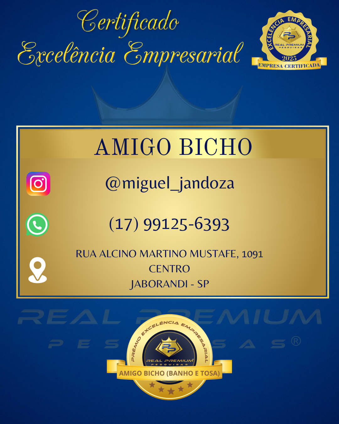 Excelência Empresarial 2025 na Categoria Banho e Tosa em Jaborandi.