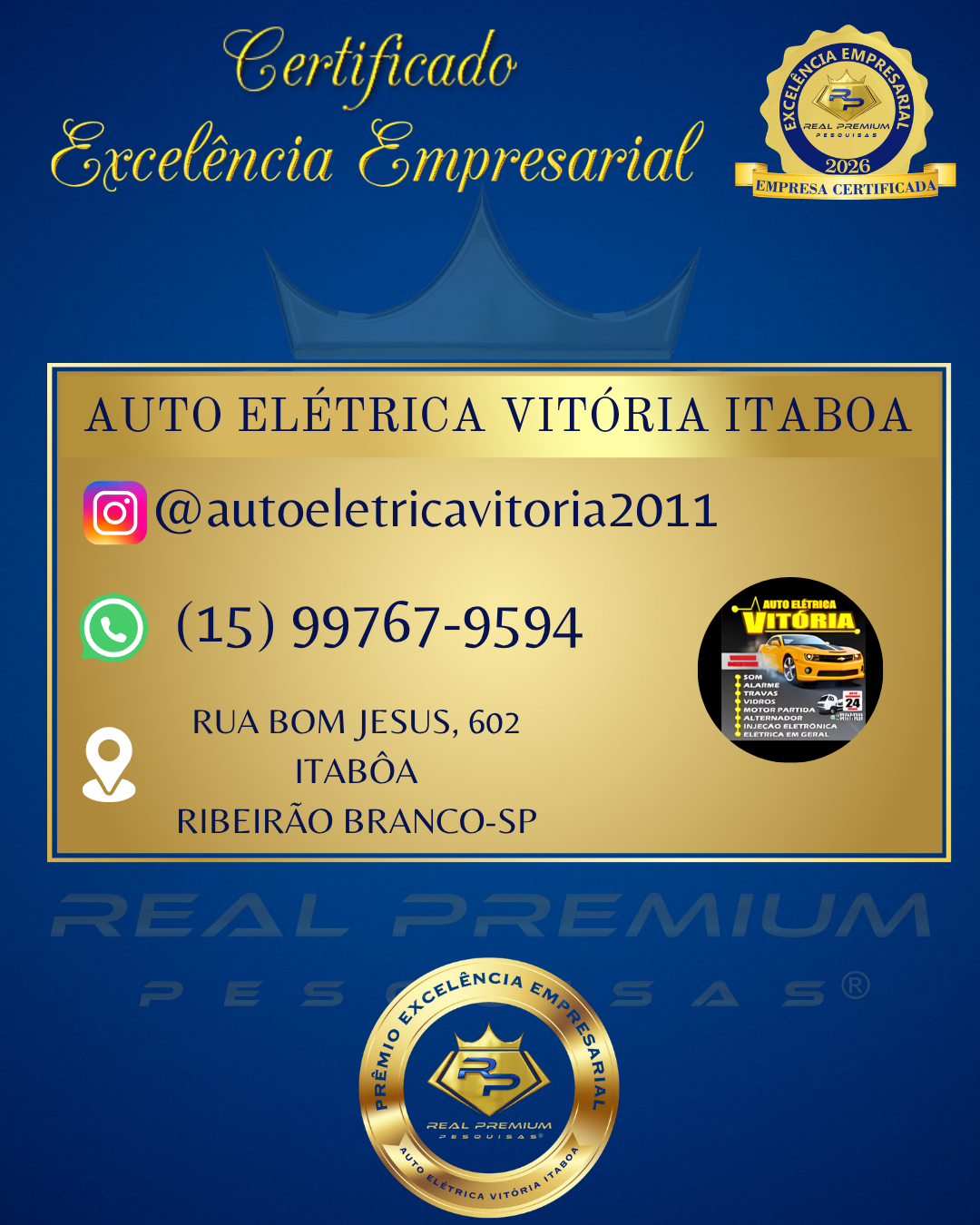 Excelência Empresarial 2026 na Categoria Auto Elétrica em Ribeirão Branco.