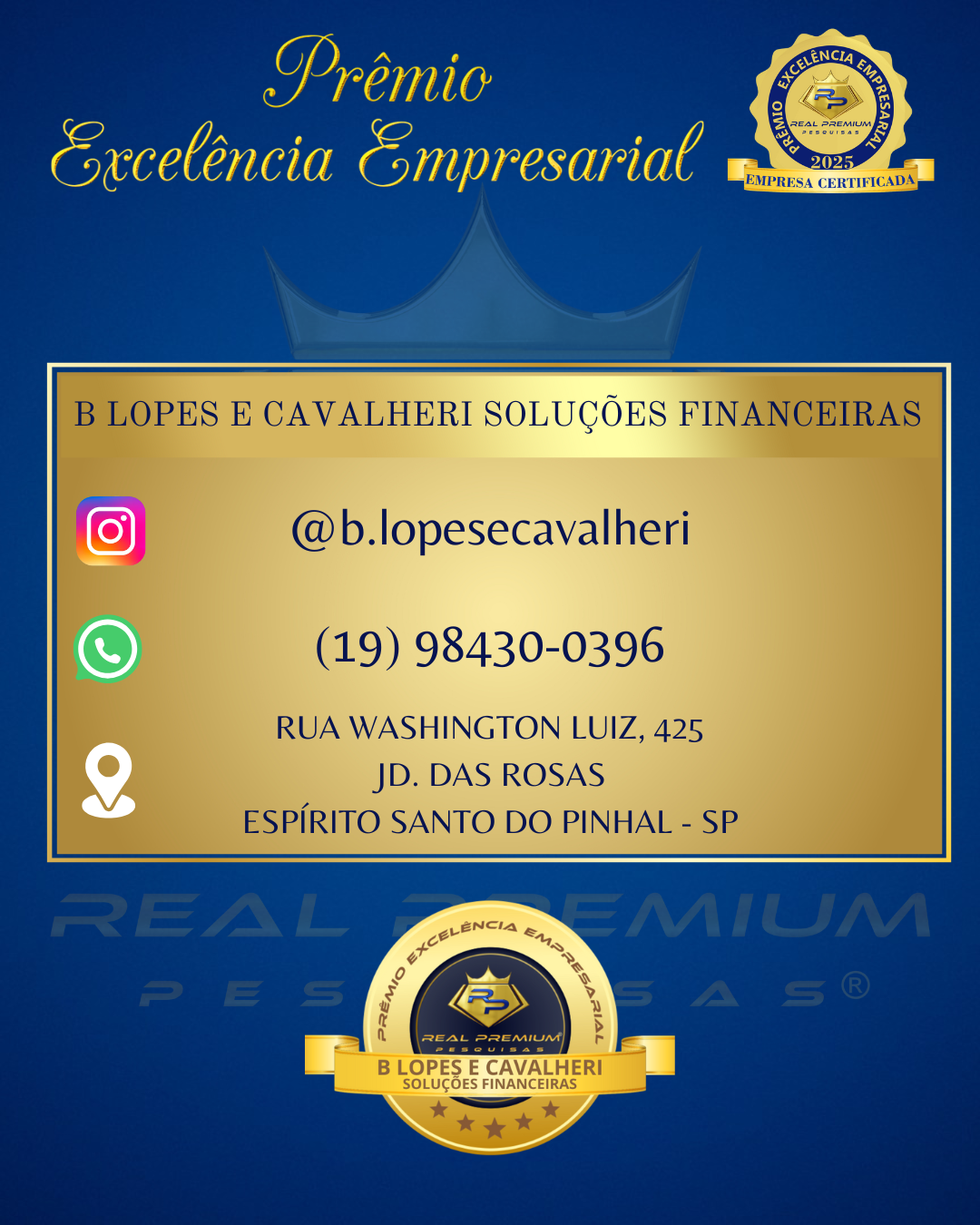 Prêmio Excelência Empresarial 2025 na Categoria Financeira em Espirito Santo do Pinhal.