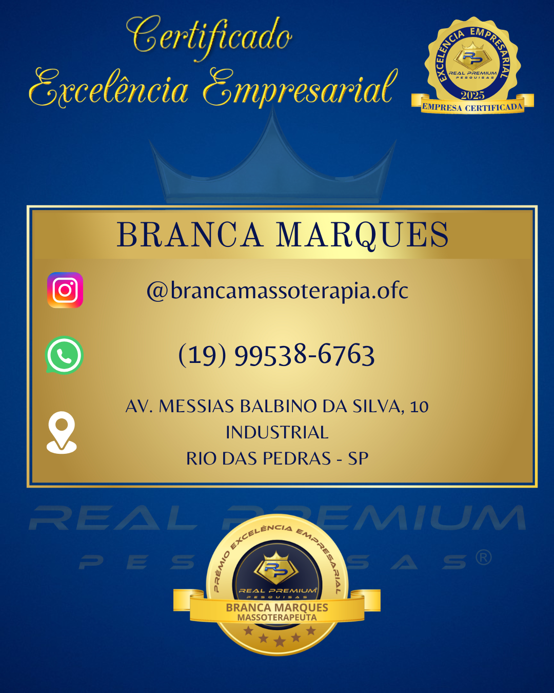 Excelência Empresarial 2025 na Categoria Massoterapeuta em Rio das Pedras.