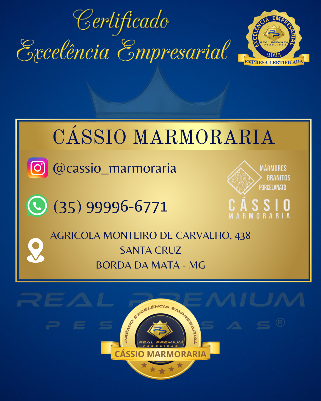 Excelência Empresarial 2025 na Categoria Marmoraria em Borda da Mata.