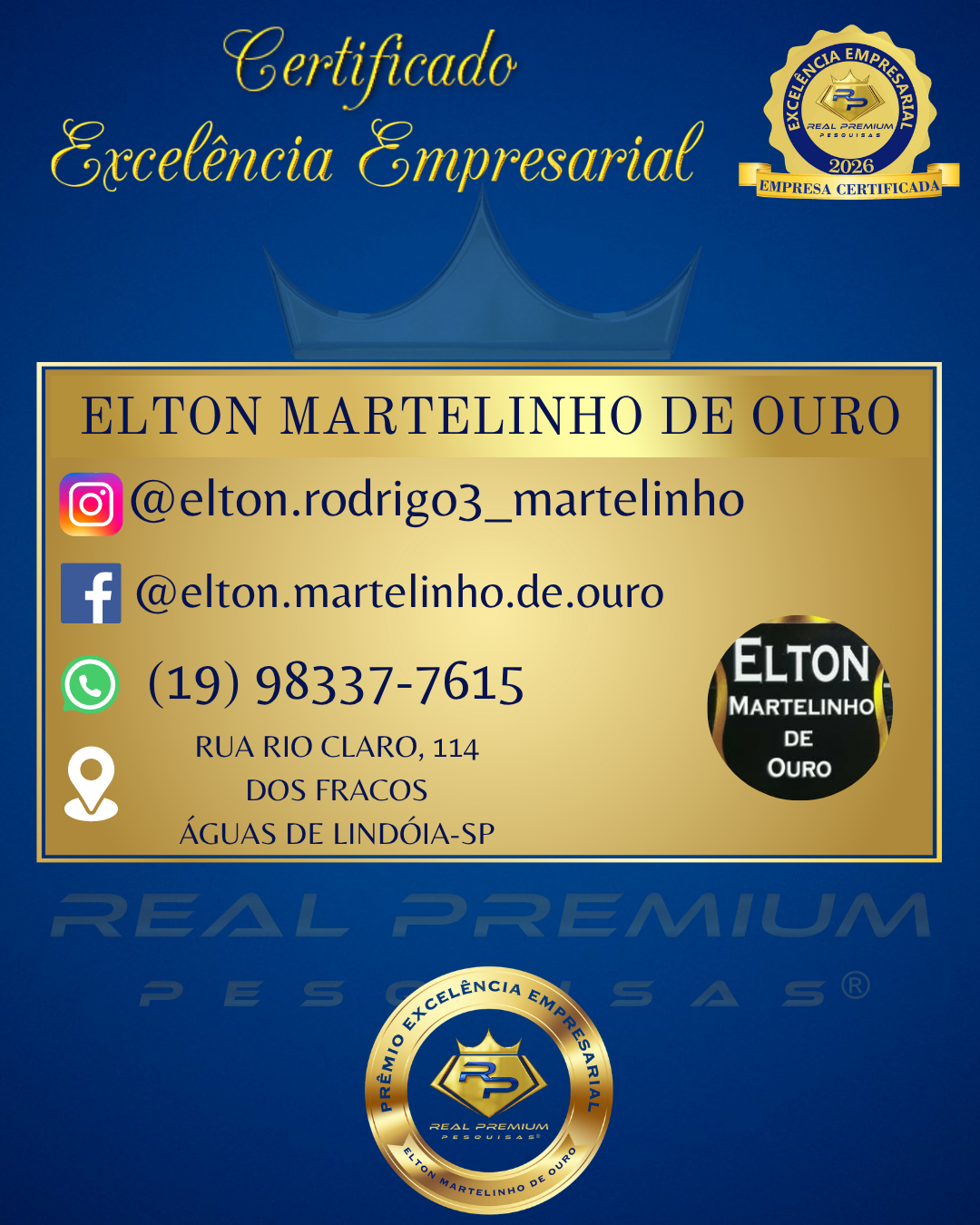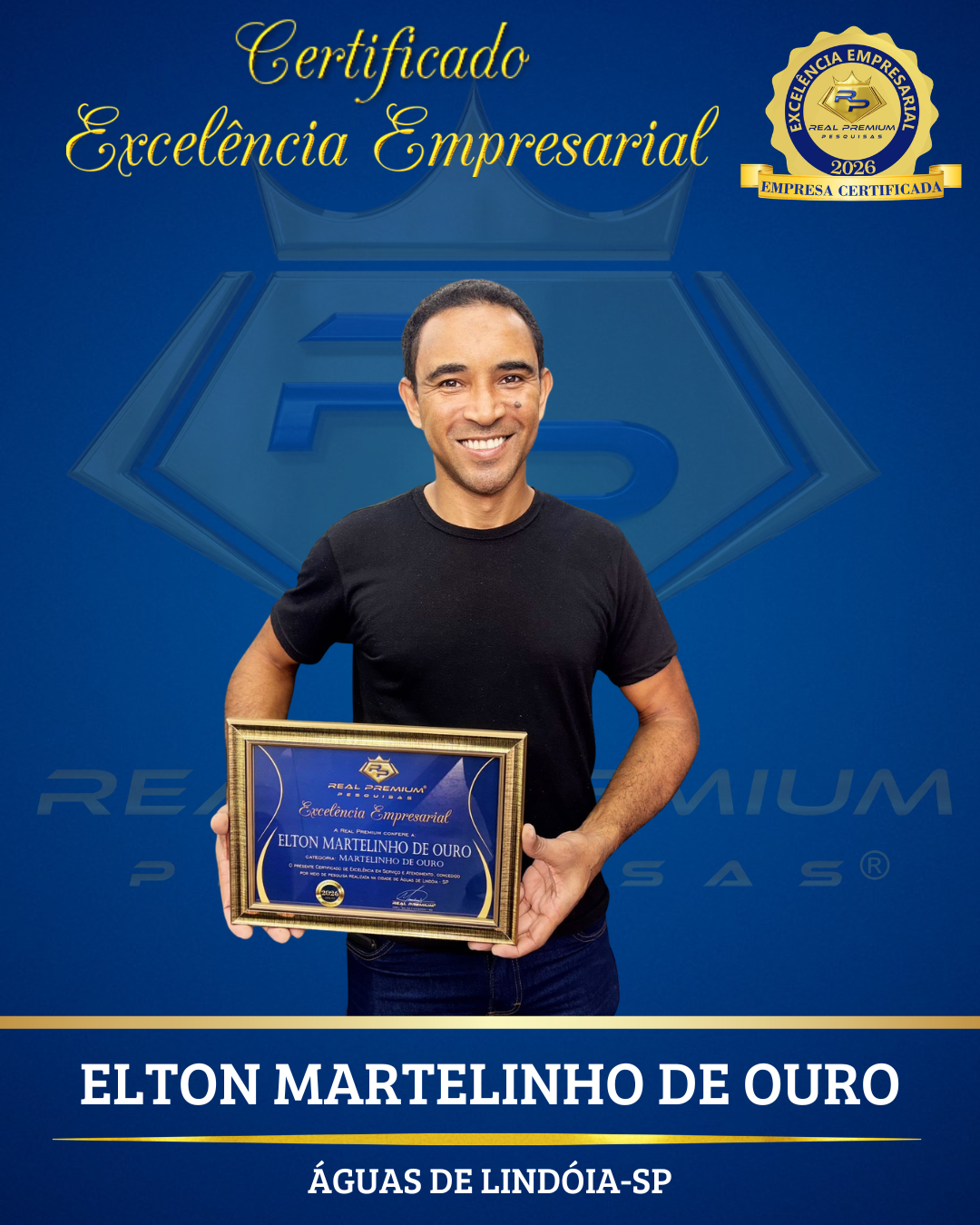 Excelência Empresarial 2026 na Categoria Martelinho de Ouro em Águas de Lindóia.