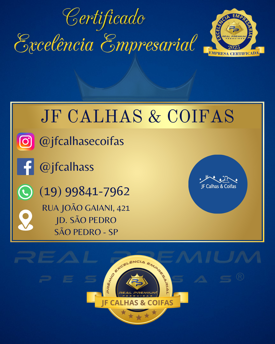 Excelência Empresarial 2025 na Categoria Calhas e Rufos em São Pedro.