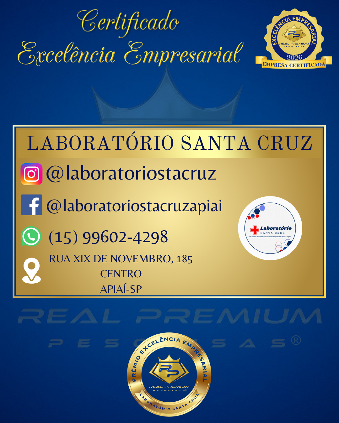 Excelência Empresarial 2026 na Categoria Laboratório de Análises Clínicas em Apiaí.