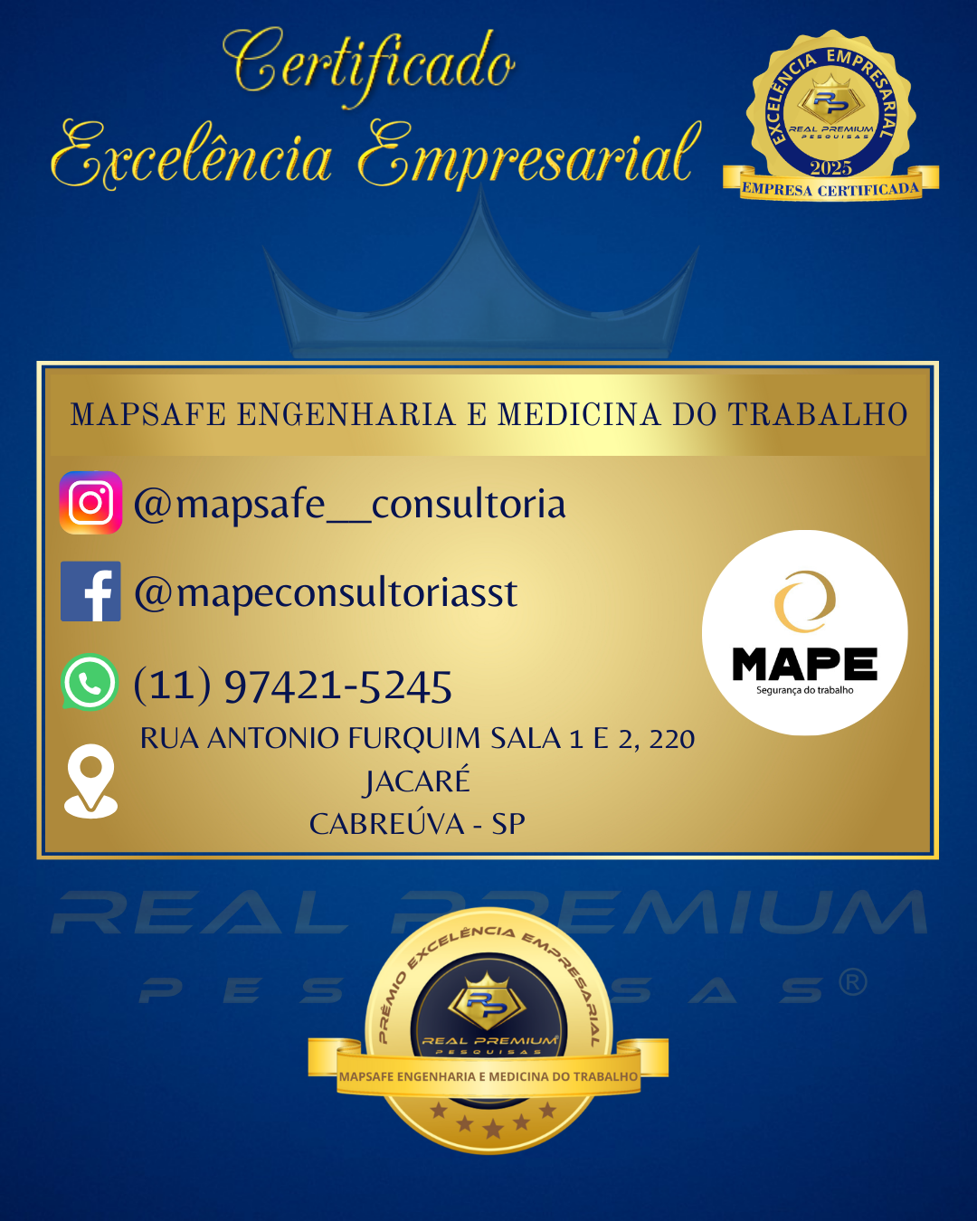 Prêmio Excelência Empresarial 2025 na Categoria Medicina e Segurança do Trabalho em Cabreúva.