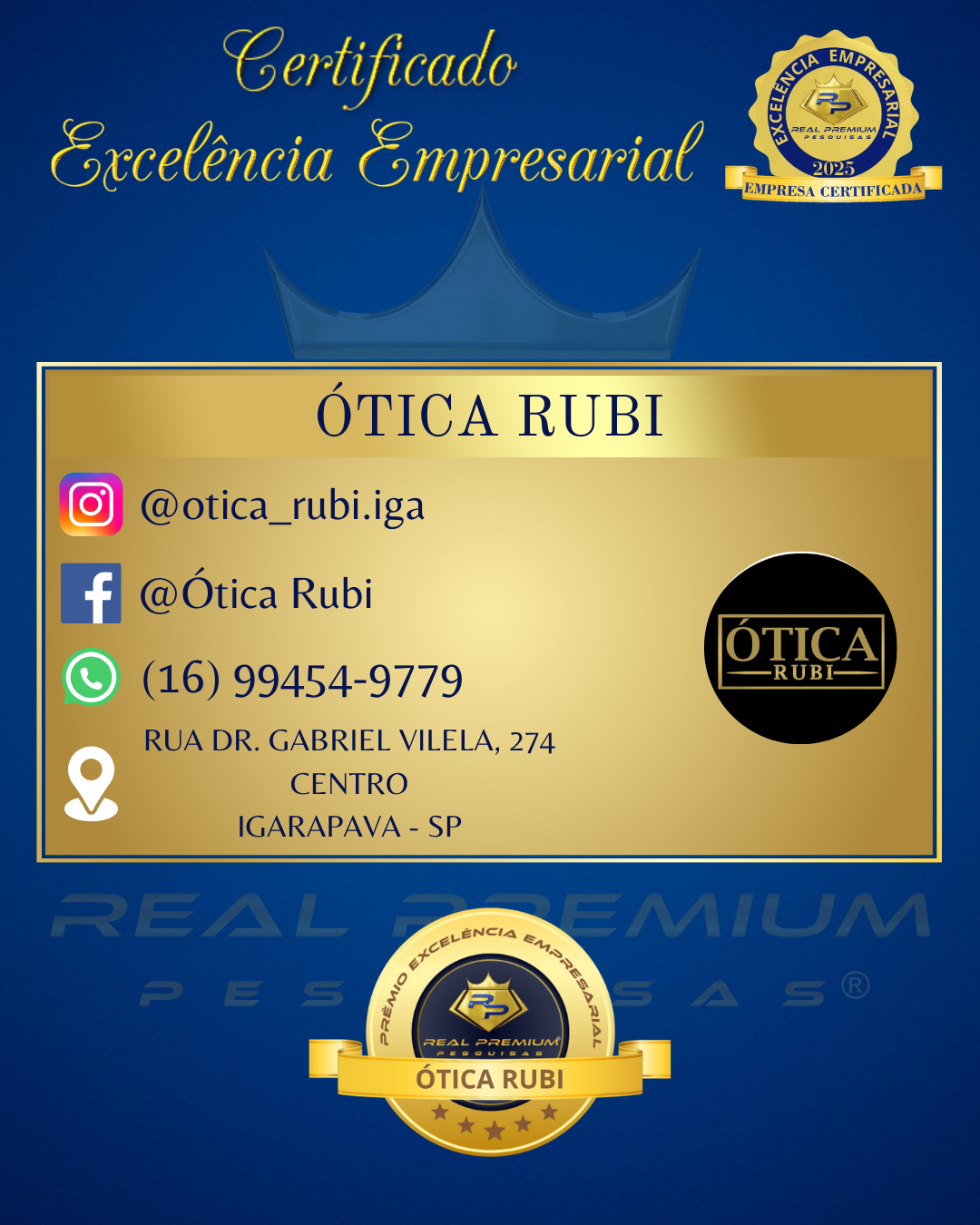 Prêmio Excelência Empresarial 2025 na Categoria Ótica em Igarapava.
