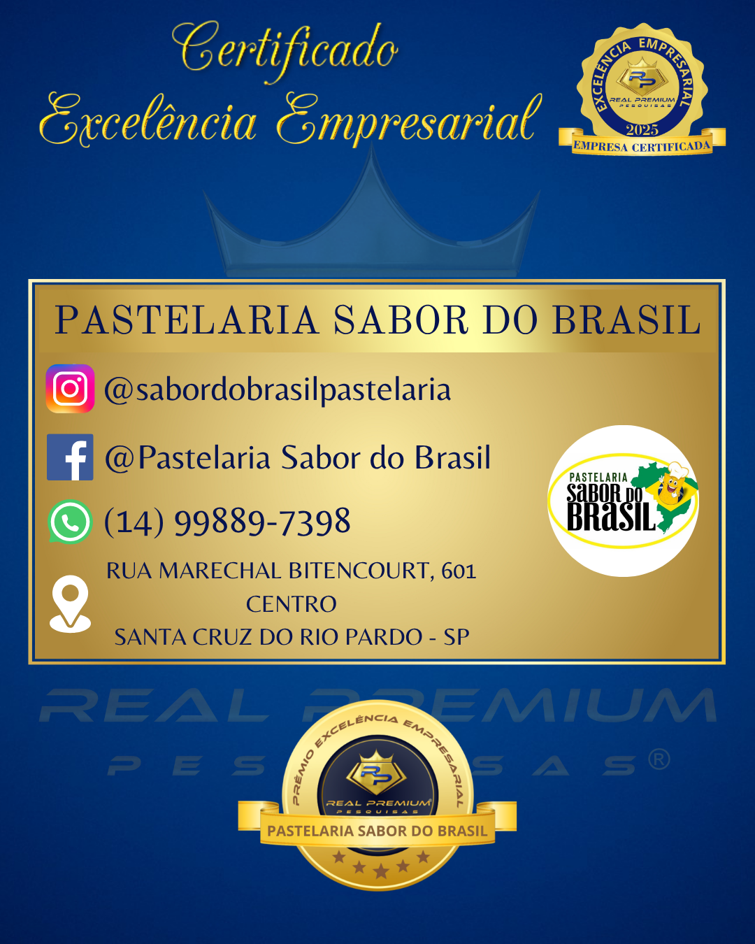 Excelência Empresarial 2025 na Categoria Pastelaria em Santa Cruz do Rio Pardo.