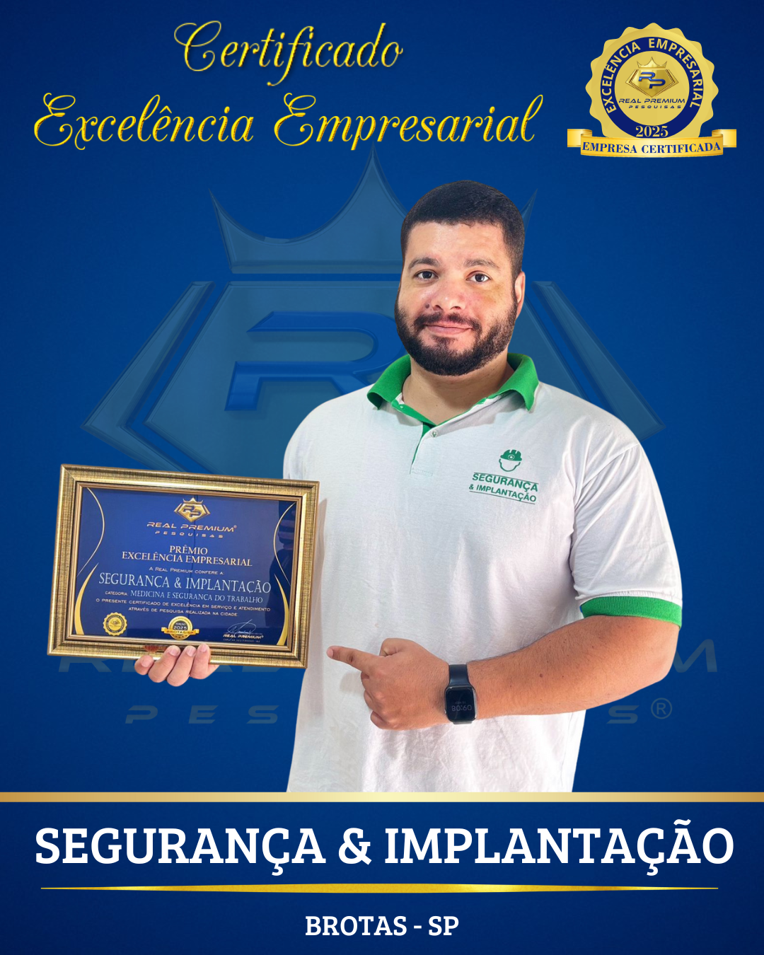 Excelência Empresarial 2025 na Categoria Medicia e Segurança do Trabalho em Brotas.