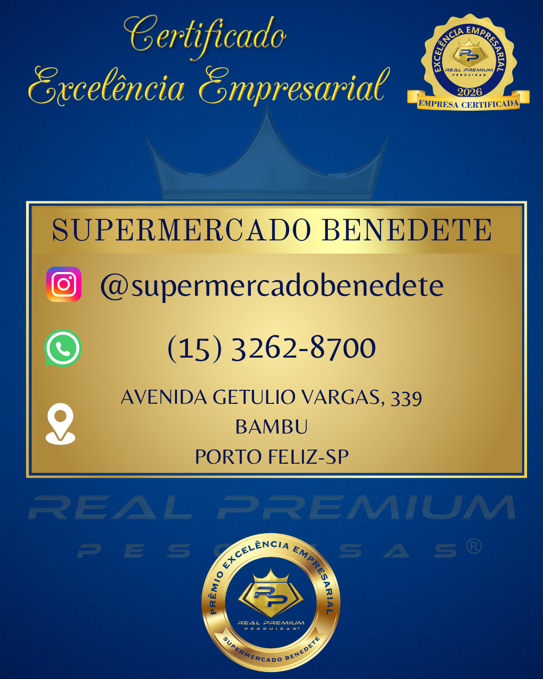Excelência Empresarial 2026 na Categoria Supermercado em Porto Feliz.