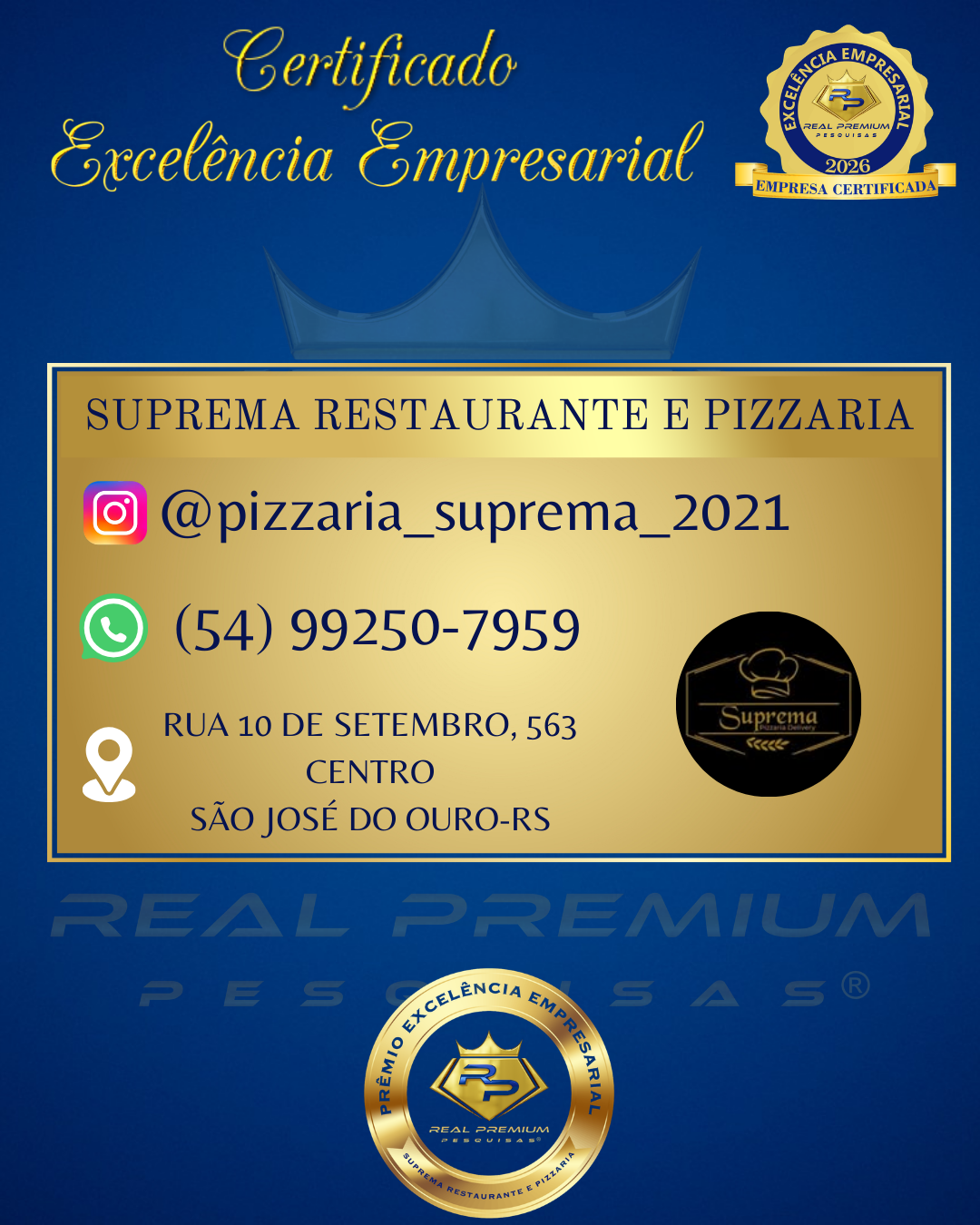 Excelência Empresarial 2026 na Categoria Pizzaria em São José do Ouro.